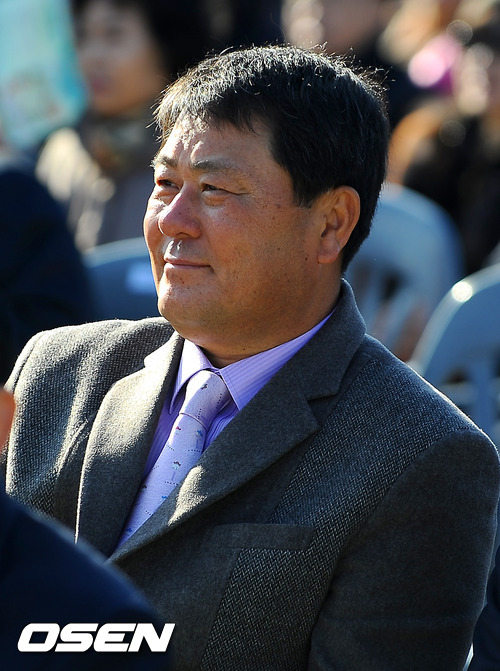 24일 오후 전남 광주시 임동 무등경기장 종합경기장에서 열린 광주 새 야구경기장 기공식에서 김성한 전 KIA 타이거즈 감독이 참석해 야구장 건립을 축하하고 있다.