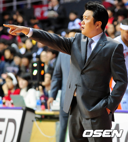 24일 오후 고양시 고양체육관서 열린 '2011-2012 KB국민카드 프로농구' 고양 오리온스와 인천 전자랜드의 경기 1쿼터 전자랜드 유도훈 감독이 선수들에게 지시를 하고 있다.