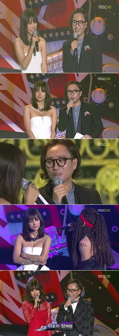 방송 시간이 지체되자 정재형은 멘트 도중 “시간도 없는데”라고 말해 MC로서의 본분(?)을 다하는 모습을 보이기도 했다. 이효리는 특별게스트로 출연한 UV의 ‘쿨하지 못 해 미안해’ 무대에도 직접 참여해 유세윤과 퍼포먼스를 선보였다.