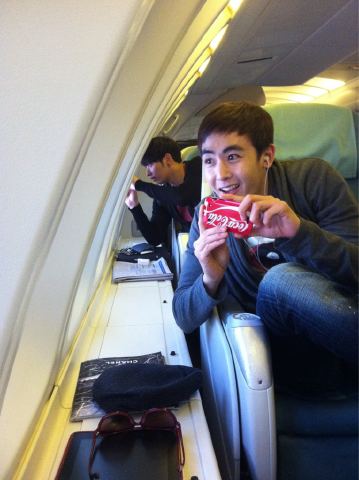 사진 속 닉쿤은 비행기 안에서 창 밖을 보며 해맑게 웃고 있다. 동그란 눈과 약간 벌어진 입이 그의 귀여운 매력을 보여주고 있어 눈길을 끈다. 그의 뒤에는 찬성이 창 밖의 풍경 사진을 찍느라 여념이 없다.