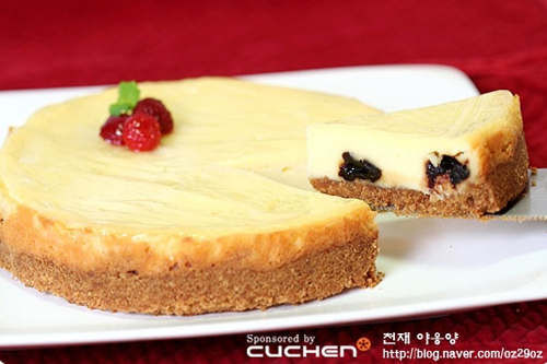 : 통밀쿠키(120g), 버터(3큰술), 건조체리, 크림치즈(300g), 설탕(75g), 달걀, 생크림(90g), 박력분(20g), 레몬즙(15g)