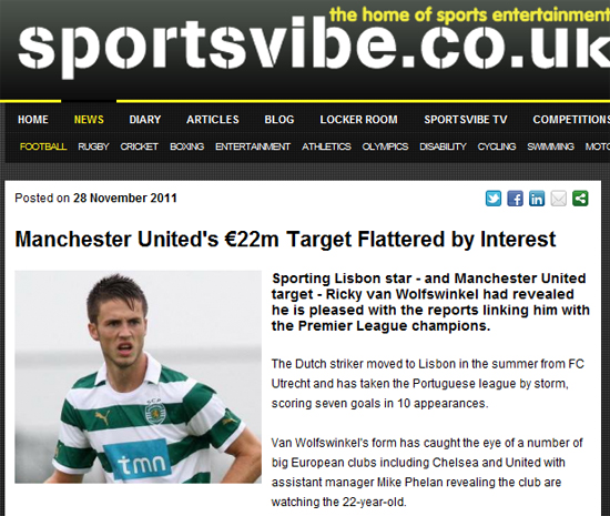 맨유가 팀의 차세대 스트라이커로 볼프스빈켈을 점찍어 놓은 것은 유명하다. 그러나 반 볼프스빙켈은 FC 위트레히트(네덜란드)에서 생활을 접고 이번 시즌부터 포르투갈 리그의 스포르팅 리스본으로 이적했다. 그럼에도 맨유는 반 볼프스빙켈을 꾸준히 지켜보고 있다.