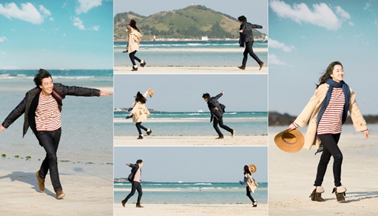 특히 하얀 모래사장이 빛나는 해수욕장에서 두 팔 벌린 두 사람의 모습은 마치 세상을 다 얻은 듯해 보는 사람들마저 행복 바이러스를 느끼게 한다.