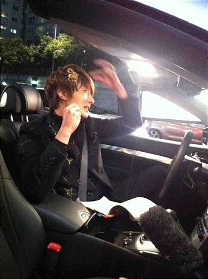 사진 속 정일우는 머리와 옷에 날계란이 잔뜩 묻어있는 모습으로 짜증 섞인 표정을 짓고 있다. 그의 옆에는 촬영용 마이크가 자리하고 있으며, 다리에 대본이 올려져 있는 것으로 봐 촬영 중으로 보인다.