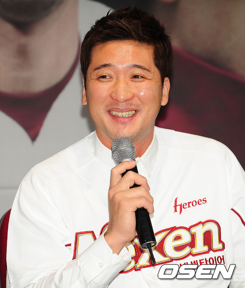 29일 오전 서울 목동구장에서 열린 넥센 히어로즈의 이택근 환영식 및 기자회견에서 이택근이 기자회견중 환하게 미소짓고 있다.