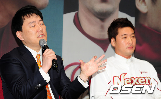 29일 오전 서울 목동구장에서 열린 넥센 히어로즈의 이택근 환영식 및 기자회견에서 이장석 대표가 기자회견을 하고 있다.