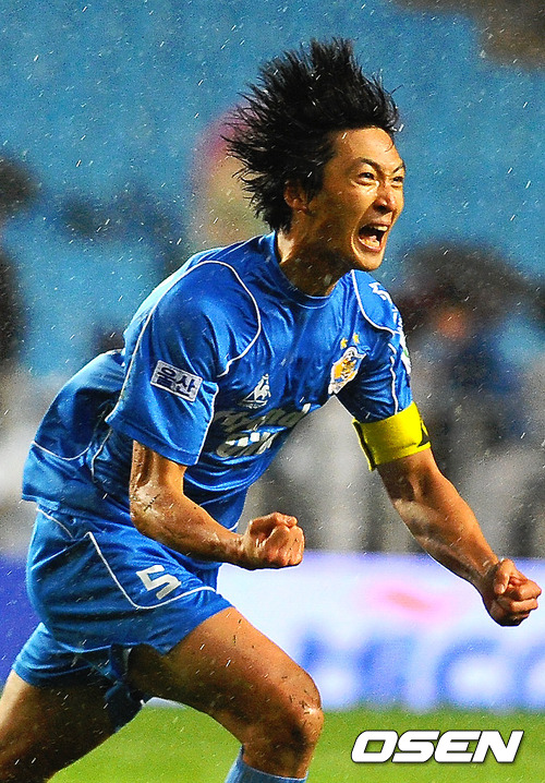 30일 오후 울산문수월드컵경기장서 열린 '현대오일뱅크 K리그 2011 챔피언십' 챔프 1차전 후반 울산 곽태휘가 동점골을 넣고 환호하고 있다.