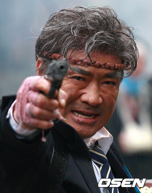 포스터 촬영 현장에서 배우 이덕화가 포즈를 취하고 있다.
