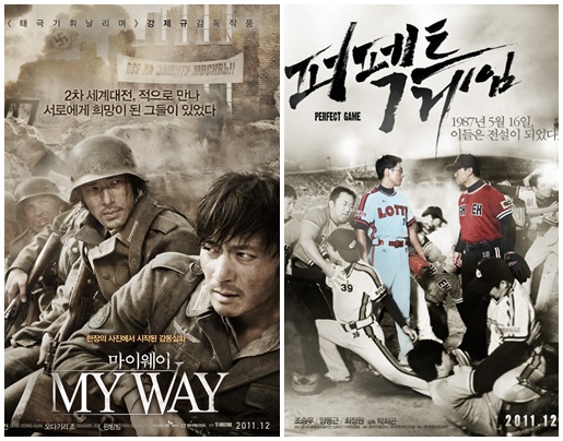할리우드 대작들이 잇따라 개봉하는 가운데 22일로 개봉일을 확정지은 국내작 ‘마이웨이’와 ‘퍼펙트게임’이 어떤 흥행 결과를 손에 쥐게 될지 관심이 집중되고 있다.