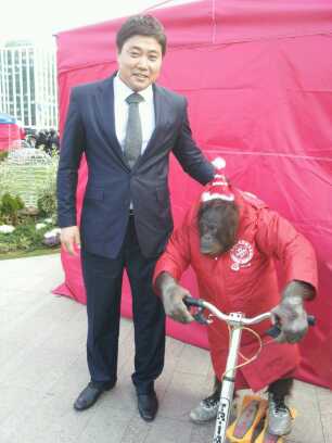 사진 속 양준혁은 깔끔하게 양복을 차려 입은 모습으로 ‘오랑이’라는 이름을 가진 오랑우탄의 어깨에 손을 올려 친근한 포즈를 취했다. 특히 오랑이는 빨간 코트와 고깔 모자를 착용하고 미니 자전거를 타고 있어 눈길을 끈다.