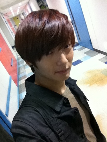 데이비드 오는 MBC 복도를 배경으로 셀카를 찍었다. 눈 까지 내려오는 긴 앞머리를 깔끔하게 한 쪽으로 넘긴 헤어스타일을 하고 살며시 웃고 있다. 부드러운 그의 이미지와 잘 어울린다.