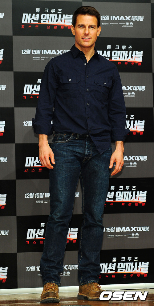2일 오후 서울 용산구 그랜드 하얏트 호텔 그랜드 볼룸에서 열린 영화 '미션 임파서블:고스트 프로토콜(이하 미션 임파서블 4)' 톰 크루즈 공식 내한 기자회견에서 톰 크루즈가 포토타임을 갖고 있다.