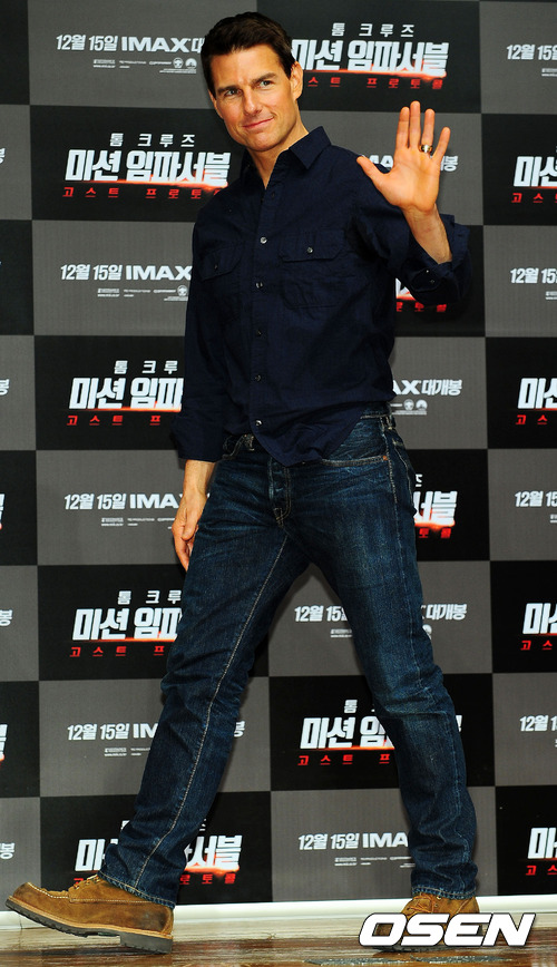 2일 오후 서울 용산구 그랜드 하얏트 호텔 그랜드 볼룸에서 열린 영화 '미션 임파서블:고스트 프로토콜(이하 미션 임파서블 4)' 톰 크루즈 공식 내한 기자회견에서 톰 크루즈가 포토타임을 갖고 있다.