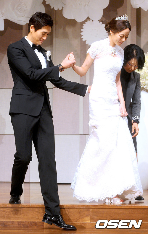 2일 오후 서울 신라호텔 영빈관에서 진행된 배우 유지태-김효진의 결혼식에 앞서 배우 유지태와 김효진이 퇴장하고 있다