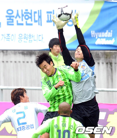 '현대오일뱅크 K-리그 2011 챔피언십' 챔피언 결정 2차전 전반 이동국의 페널티킥을 막아낸 김영광이 다시 넘어온 크로스를 잡아내고 있다.