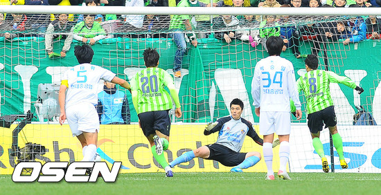 4일 오후 전주월드컵경기장서 열린 '현대오일뱅크 K리그 2011 챔피언십' 챔피언결정전 2차전 후반 전북 에닝요가 페널티킥으로 동점골을 넣고 있다.