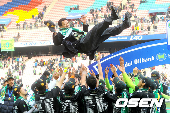 우승을 차지한 전북 최강희 감독이 헹가래를 받고 있. ./ soul1014@osen.co.kr