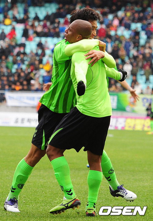 후반 루이스가 역전골을 성공시키고 이동국과 포옹을 하며 기뻐하고 있다. /jpnews@osen.co.kr