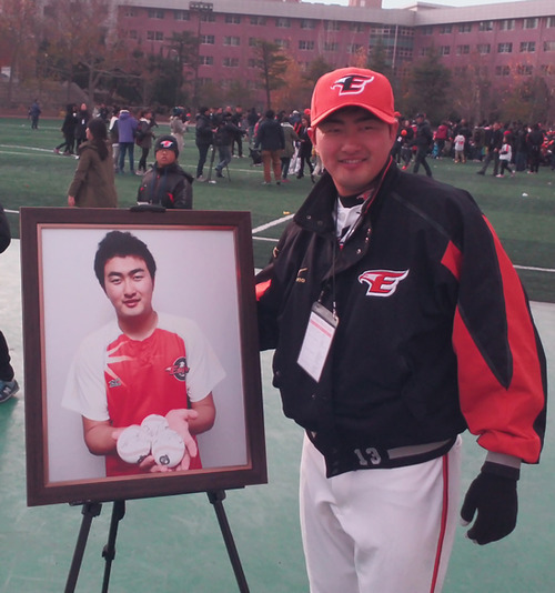 4일 대전 우송대학교에서 제9회 한화 이글스 독수리 축제 한마당이 열렸습니다. 한화 선수들도 모두 참석해 그동안 끊임 없는 성원을 보내준 팬들과 즐거운 한때를 보냈는데요. 2년차의 투수 안승민(20)도 천진난만하게 팬들과 어울렸습니다.