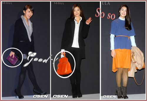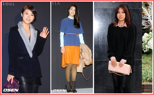 배우 김규리와 하지원은 올 블랙 패션에 가방을 비비드하게 포인트 줘서 전체적으로 한결 세련되고 화사해 보이기까지 하는 스타일을 선보였다. 결혼식 하객이라는 점에서 스타일은 너무 튀지 않게 입고, 화사한 컬러의 백으로 밋밋함을 덜어주어 패셔니스타다운 면모를 과시했다.
