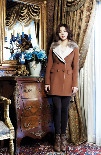 신세경이 선택한 베이직 코트는 허리라인을 강조하여 여성스러운 라인으로 브라운 컬러를 선택하여 따뜻하게 연출했고, 칼라 부분의 화이트 배색과 퍼 디테일로 개성과 여성미를 더했다.