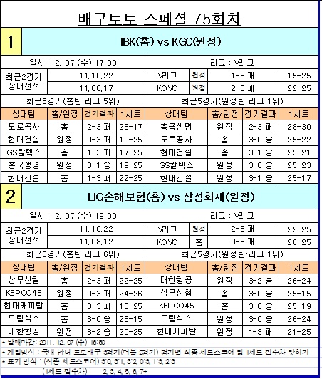 1~3세트 승리팀과 점수차를 맞히는 배구토토 매치 게임에서 세트별 예상 승리팀은 1세트(87.52%), 2세트(83.82%), 3세트(78.53%) 모두 삼성화재로 나타났다. 3세트까지의 각 세트별 예상 점수차는 1세트(34.13%)와 2세트(27.11%)는 5~6점차, 3세트(41.16%)는 3~4점차가 가장 높게 집계됐다.