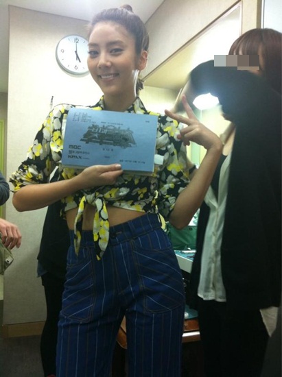 사진 속 손담비는 화려한 노란색 패턴이 들어간 짧은 셔츠를 입고 세로줄무늬가 그려진 남색 하이웨스트 팬츠를 입었다. 안 어울릴 법한 조합의 옷이지만 멋스럽게 소화했다. 드라마 대본을 손에 쥐고 한 손으로 브이자를 그린 채 활짝 웃고 있는 모습이 눈길을 끈다.