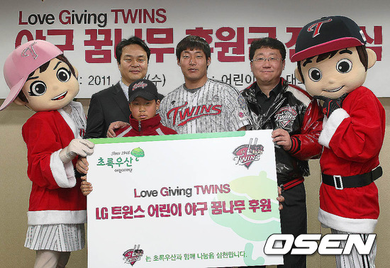 [OSEN=손용호기자] 초록우산 어린이재단과 함께 야구 꿈나무 후원협약을 맺고 있는 LG트윈스는 7일 중구 무교동 한국어린이재단을 방문해 시즌중 적립한 후원금을 전달했다.