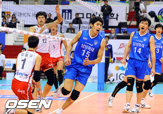 삼성화재가 7일 저녁 구미 박정희체육관에서 열린 2011~2012 NH농협 V리그 구미 LIG손해보험과 경기에서 세트 스코어 3-1(28-26 23-25 25-21 25-18)로 승리했다.