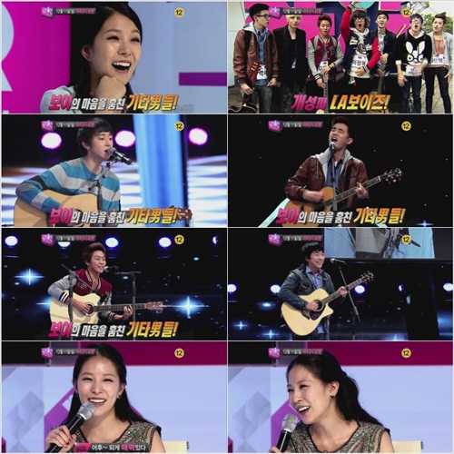 보아는 지난 10월 미국 LA 지역 오디션에서 날카로운 심사로 옥석을 골라내던 중 유독 기타 치는 남성 참가자들에게 흐뭇한 미소를 지어 보여 눈길을 끌었다. 보아는 "기타 치며 노래하는 남자에게 매력을 느끼는 걸까"라며 이상형을 암시하기도 했다. 이에 '기타남(男)'들이 대거 포진된 일명 'LA 보이즈'에 대한 궁금증이 커지고 있는 상황이다.