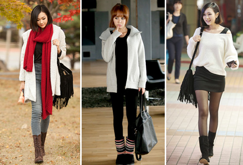 또한, 발목이 드러나는 '앵클부츠' 위에 레그워머를 이용해 보는 것도 좋은 방법이다.