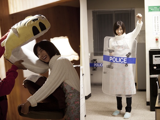 사진 속에서 이지아는 현장 촬영 스태프와 인형을 가지고 장난을 치는가 하면, 확성기와 방패 등 촬영 소품들을 들고 카메라를 보며 코믹한 포즈와 표정을 취해 현장 분위기를 한결 밝게 만들었다는 후문이다.