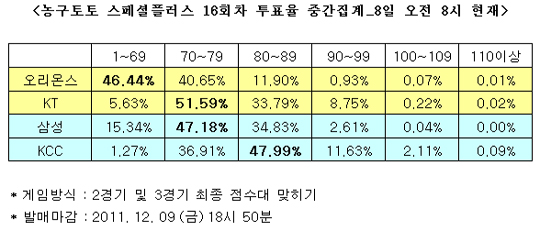 국내 프로농구 2경기 대상 농구토토 스페셜플러스 16회차 투표율 중간집계