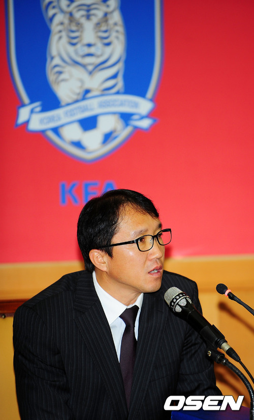 8일 오전 서울 종로구 축구회관에서 열린 조광래(57) 축구 국가대표팀 감독 전격 경질관련 기자회견에서 황보관 기술위원장이 말을 하고 있다.