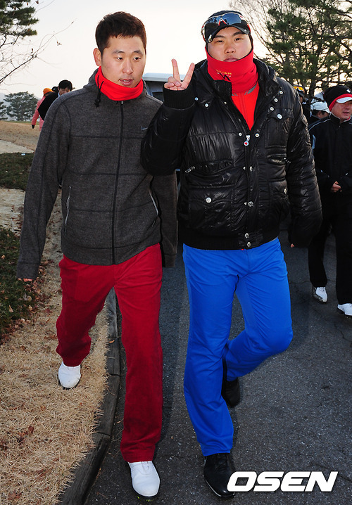 대회에 앞서 한화 류현진과 KIA 윤석민이 이야기를 나누며 이동하고 있다.
