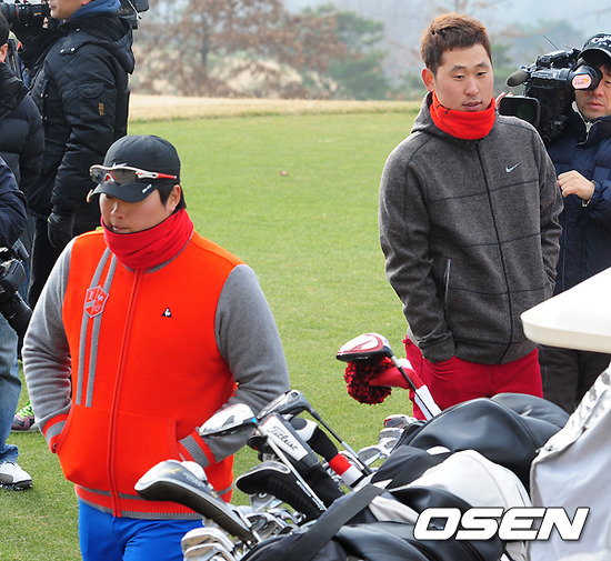 한화 류현진과 KIA 윤석민이 다음 홀로 이동하고 있다.
