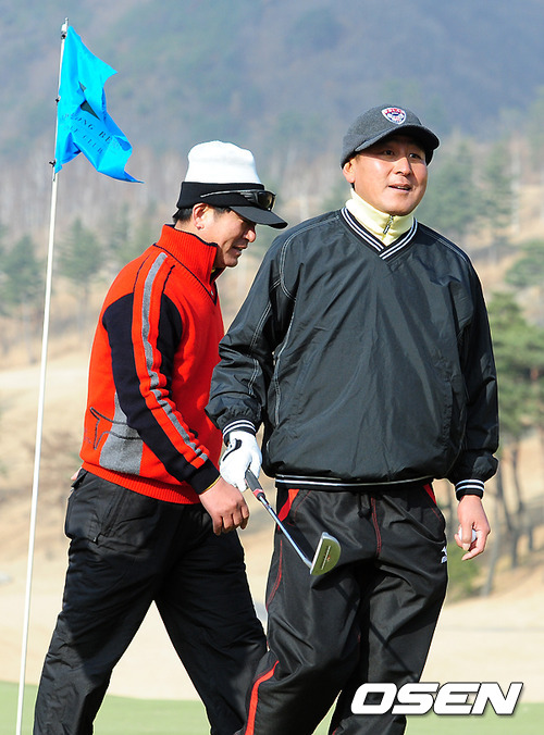 삼성 류중일, LG 김기태 감독이 다음 홀로 이동하고 있다.