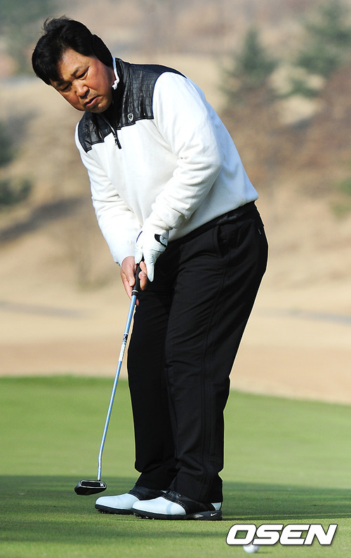 SK 이만수 감독이 퍼팅을 하고 있다.