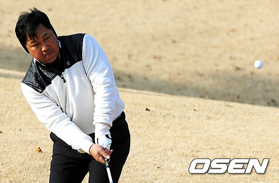 SK 이만수 감독이 어프로치샷을 날리고 있다.