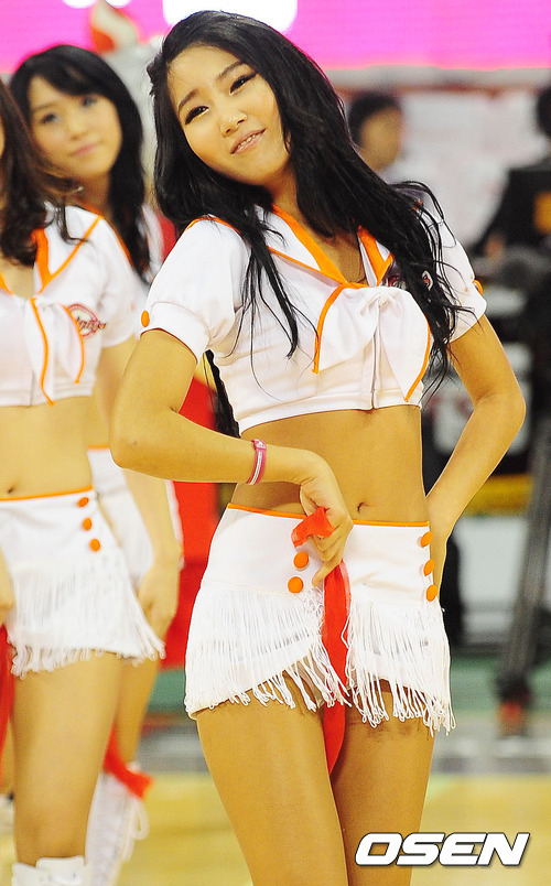 8일 오후 서울 잠실학생체육관에서 열린 '2011~2012 KB국민카드 프로농구' 서울 SK와 원주 동부 경기에서 SK 치어리더들이 코트 위에서 화려한 공연을 펼치고 있다.