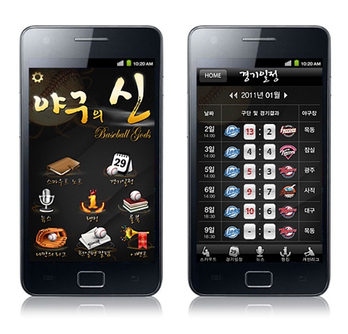 '2011 야구의 신'은 스카우트 노트, 경기일정, 천일평 칼럼, 랭킹, 룰북, 나만의 리그’ 등 다양한 프로야구 전문 정보와 야구 팬들이 실제 야구를 즐기면서 이용 할 수 있는 구속 측정기와 룰북 서비스를 제공해 야구 마니아들에게 인기가 높은 어플리케이션이다.