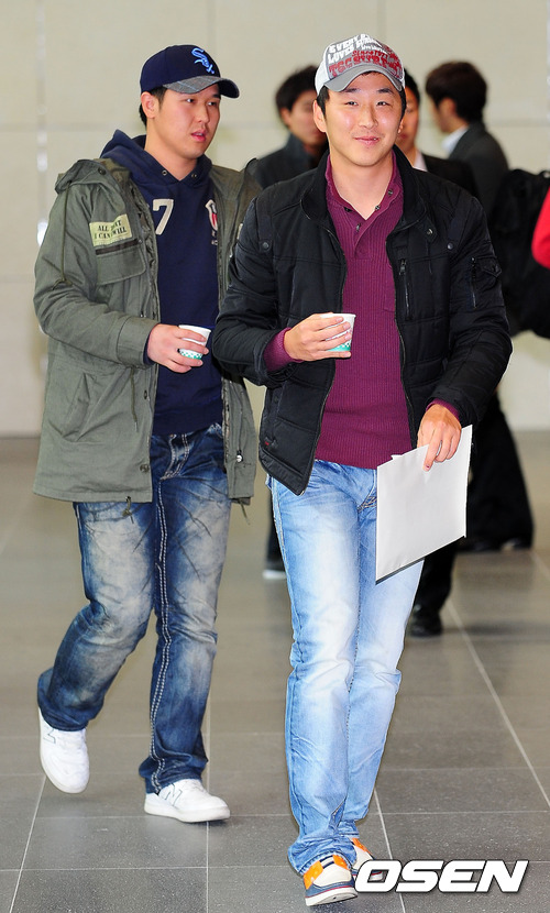 9일 오후 경기도 성남시 분당구 정자동의 NHN 그린 팩토리에서 진행된 한국프로야구선수협회 회장 선거에서 정우람(SK)과 최정(SK)가 입장하고 있다.