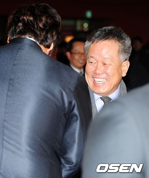 11일 오후 서울 강남구 2011 SETEC 제1전시장(서울무역전시컨벤션센터)에서 열린 롯데카드 프로야구 골든글러브 시상식에서 시상식 전 이대호가 양승호 감독과 악수를 나누고 있다.