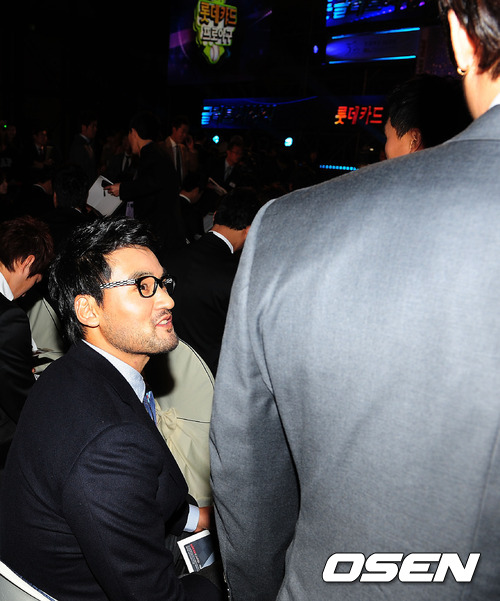 11일 오후 서울 강남구 2011 SETEC 제1전시장(서울무역전시컨벤션센터)에서 열린 롯데카드 프로야구 골든글러브 시상식에서 박찬호가 동료들과 얘기를 나누고 있다.
