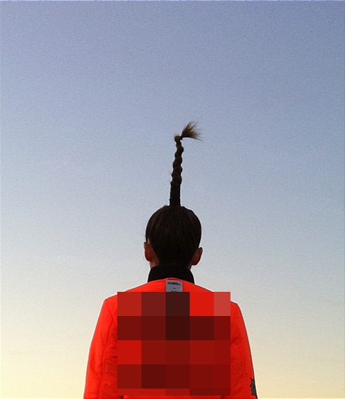 사진 속 산다라박은 야자수 머리를 한 채 뒤돌아 서 있으며 맑은 하늘과 더불어 그 모습이 마치 타워를 연상케 해 웃음을 자아낸다.