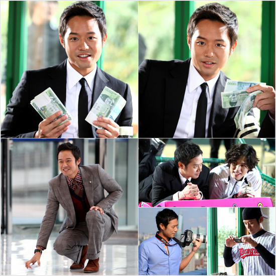 ‘영광의 재인’ 천정명이 만원권 지폐 다발을 들고 환한 웃음을 짓는 등 촬영장 ‘해피 귀요미’로 맹활약 중인 인증샷을 공개했다.