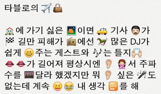 가수 타블로가 친구가 보내준 이모티콘으로 꾸민 '에어백' 가사를 공개해 웃음을 유발했다.