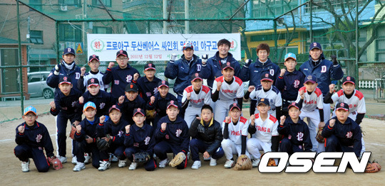 두산 베어스의 영일초등학교 졸업생인 홍상삼을 비롯해 선수단 5명이 12일 '영일초등학교 일일 야구 교실' 행사를 가졌다.