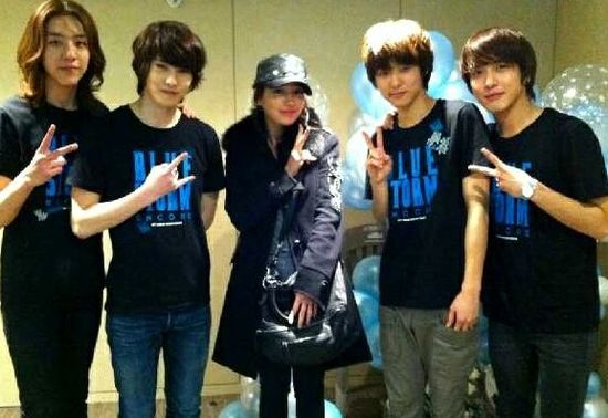 사진 속에 이민정과 씨엔블루 멤버들은 나란히 서서 '브이'를 그리고 있다. 특히 이민정은 수줍은 듯한 표정을 짓고 있어 인상적이다.