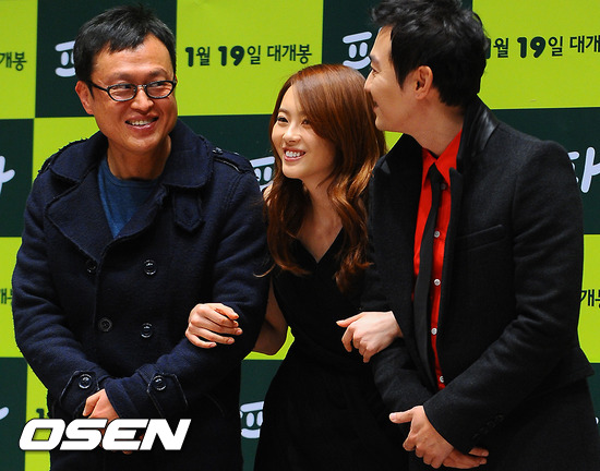 13일 오전 서울 자양동 건대입구 롯데시네마에서 진행된 영화 '파파'(한지승 감독) 제작보고회에서 배우 고아라와 박용우 한지승 감독이 포즈를 취하고 있다.